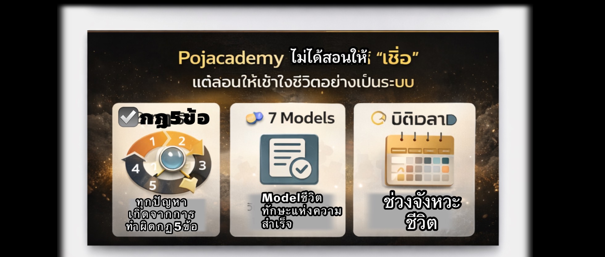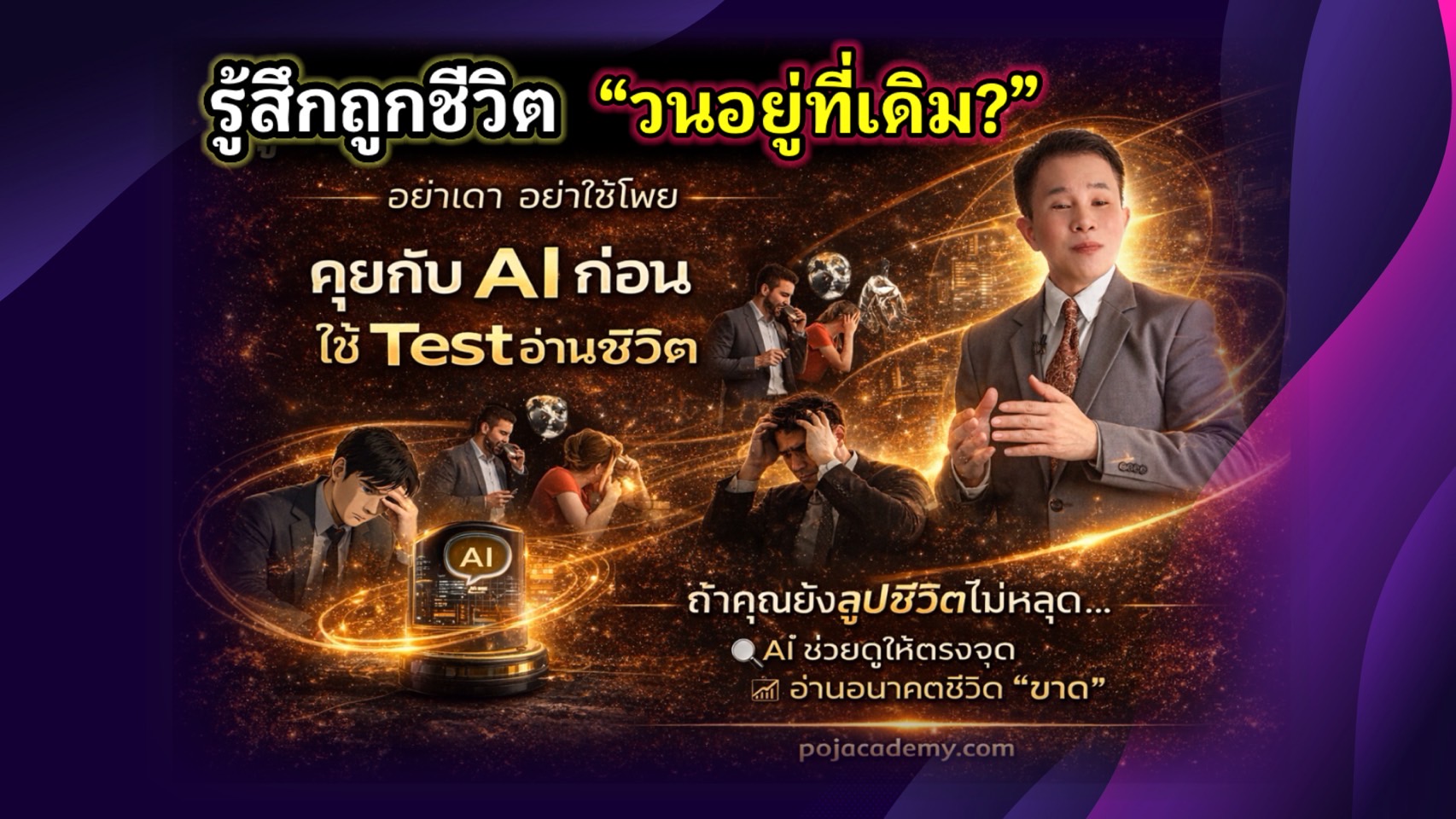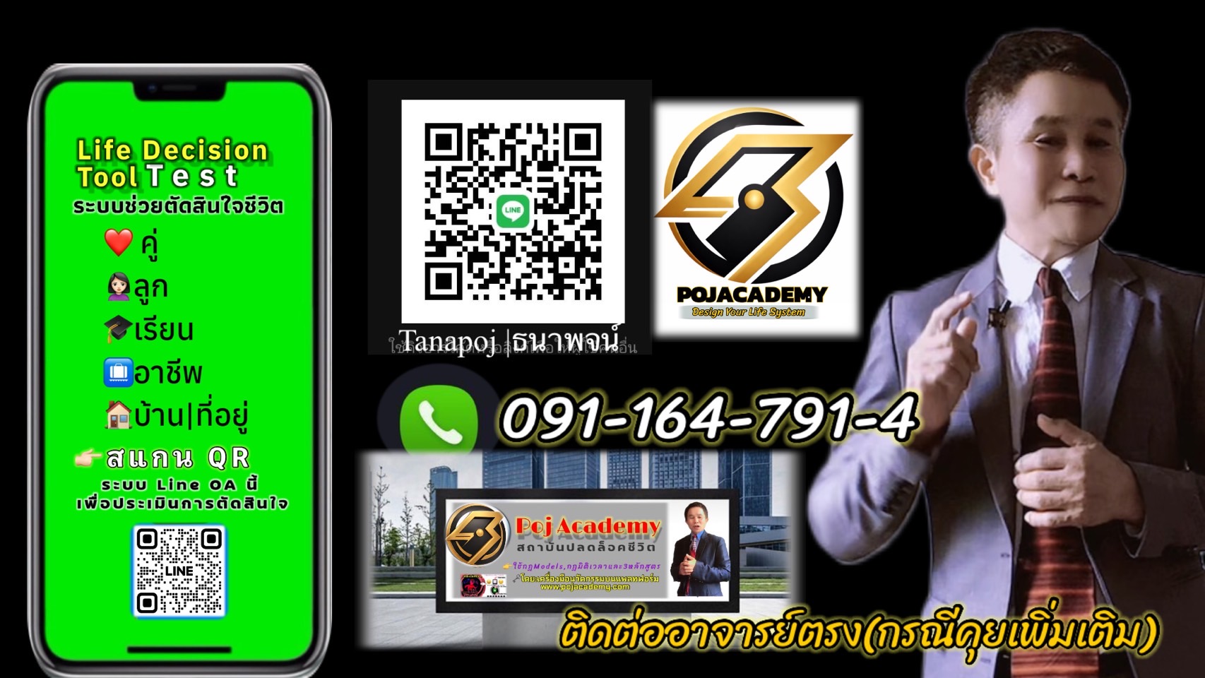 Pojacademy คือแพลตฟอร์มระบบช่วยตัดสินใจชีวิต (Life Decision System) ที่ออกแบบมาเพื่อช่วยให้มนุษย์ตัดสินใจเรื่องสำคัญ 5 จุดใหญ่ของชีวิตได้อย่างถูกจังหวะ ถูกตัวตน และลดความผิดพลาดซ้ำซาก